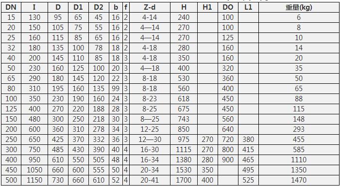 dn | l | d | d1 | d2 | b | f | z-d | h | h1 | do | l1 | 重量(kg) |