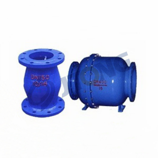hq44x微阻球形止回阀/ hq45x微阻球形止回阀采用橡胶包皮球为阀瓣,在介质的作用t可在阀体内的滑道上滚动从而打开或关闭阀门。流量大流阻损失小密封性能好消声关闭可减小水击波。水平或垂自安装均可。可用于冷水、热水、工业及生活污水等管网的水泵出口防止介质倒流。